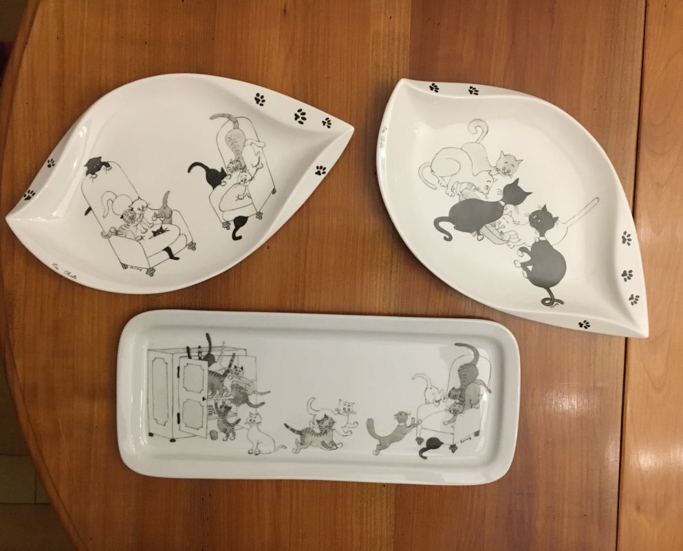 Ensemble de chats déjà peints sur porcelaine